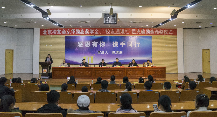 11月27日,北京校友会京华励志奖学金、“校友通讯社”星火奖励金颁奖仪式在仙林校区图书馆一楼报告厅举行。我校88届校友、北京高溪资产管理有限公司合伙人、执行董事陈继豪,校友会秘书处、学生处、MBA教育中心、各学院负责人以及获奖学生与学生代表共300多人参加了活动。颁奖仪式由2016级张予琦同学主持。