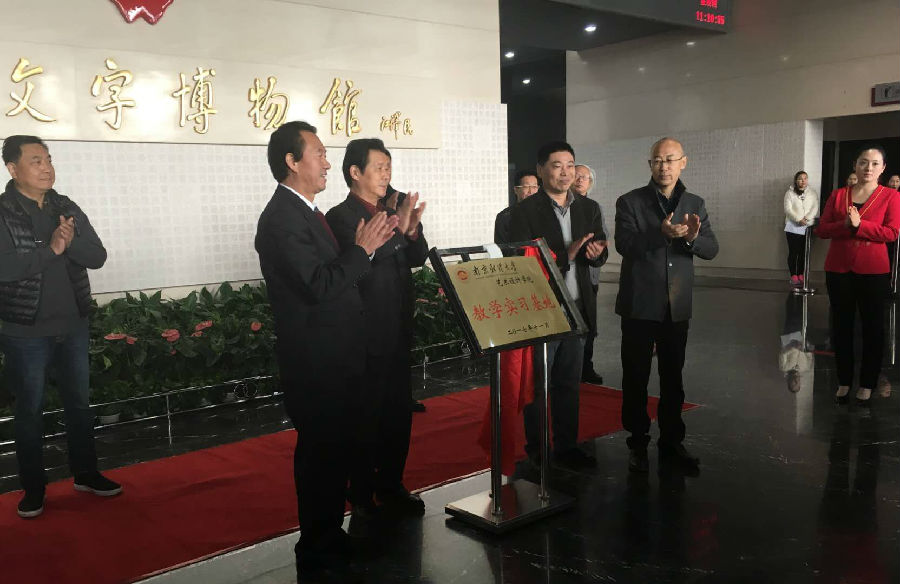 11月16日上午,南京财经大学艺术设计学院教学实习基地揭牌仪式在中国文字博物馆一楼举行。全国政协委员、中国书法家协会顾问、中国文字博物馆学术委员会委员言恭达,中国文字博物馆党委书记、常委副馆长冯克坚,我校艺术设计学院党委书记郭承波,江苏省书法家协会副主席、南京财经大学中国书画艺术研究所所长、中国文字博物馆学术委员会委员仇高驰,中国文字博物馆工作人员及艺术设计学院师生代表参加了揭牌仪式。仪式由中国文字博物馆党委副书记、副馆长李宽生主持。