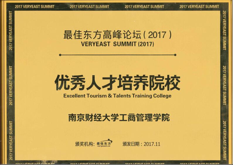 近日,由最佳东方主办,最佳东方HR公社、先之教育、迈点、乔邦猎头联合协办的“2017最佳东方高峰论坛暨第四届旅游服务业最佳雇主颁奖盛典”在杭州举行。经过专家评审,我校工商管理学院获评“优秀人才培养院校”。