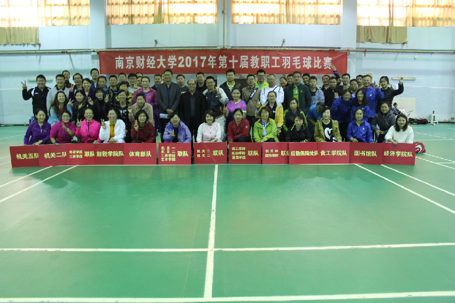11月11日,由校工会主办、体育部协办、教职工羽毛球协会承办的第十届教职工羽毛球团体赛在仙林校区体育馆举行。副校长王开田出席开幕式。校工会主席许文彪、体育部副主任(主持工作)何强以及全体运动员参加了开幕式。开幕式由工会副主席张耀光主持。来自学校18个分工会的100多名运动员组成了13个代表队参加比赛。
