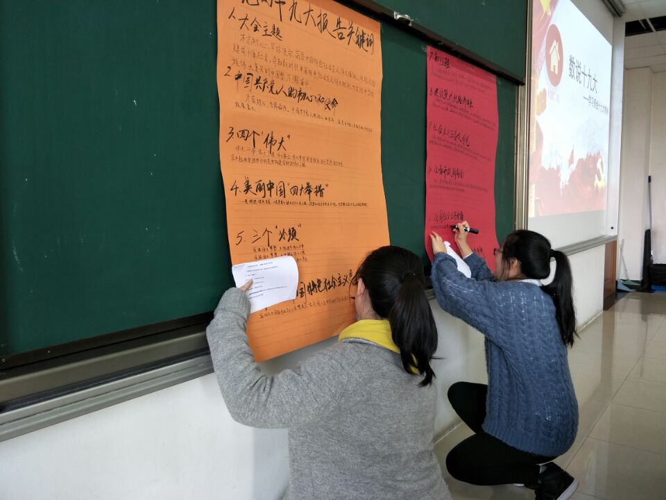 交流会伊始,郑媛媛老师带领大家认真学习党的十九大报告,并朗读“数说十九大”的学习内容。随后,12位学生党员依次上台书写十九大报告中的关键词。结合对十九大报告的学习,同学们纷纷畅谈了自己的心得体会。学生党员们畅谈了十八大以来,党和国家各方面发生的巨大变化。沈宗礼同学颇有感触地说:“我的家乡扬州,近五年来人民的收入增长了,公共设施更加便民,生活环境越来越好,人民生活更加幸福。”何胜男同学说:“作为毕业班党员,要始终牢记党员身份,在党爱党、在党为党,在今后的学习生活中和未来的工作岗位上,脚踏实地、不懈奋斗,为祖国更富、更强、更美贡献力量。”