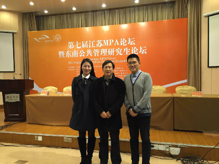 11月4日,第七届江苏MPA论坛暨东南公共管理研究生论坛在东南大学举行,全国MPA教学指导委员会委员徐晓林教授、麻宝斌教授、石晓平教授等专家代表出席活动。来自江苏及周边地区20所MPA培养院校的师生代表、江苏MPA联谊会代表近200人参加了本次论坛。我校公共管理学院MPA教育中心主任、社会保障研究院院长曹信邦教授及2016级MPA学员代表龚霄、王柯、王磊参加活动。其中,王磊、龚霄两位同学提交的论文《公共自行车的公共治理探析》《关于栖霞区全民阅读公众参与度的调查报告》分别获得优秀论文二等奖和三等奖。
