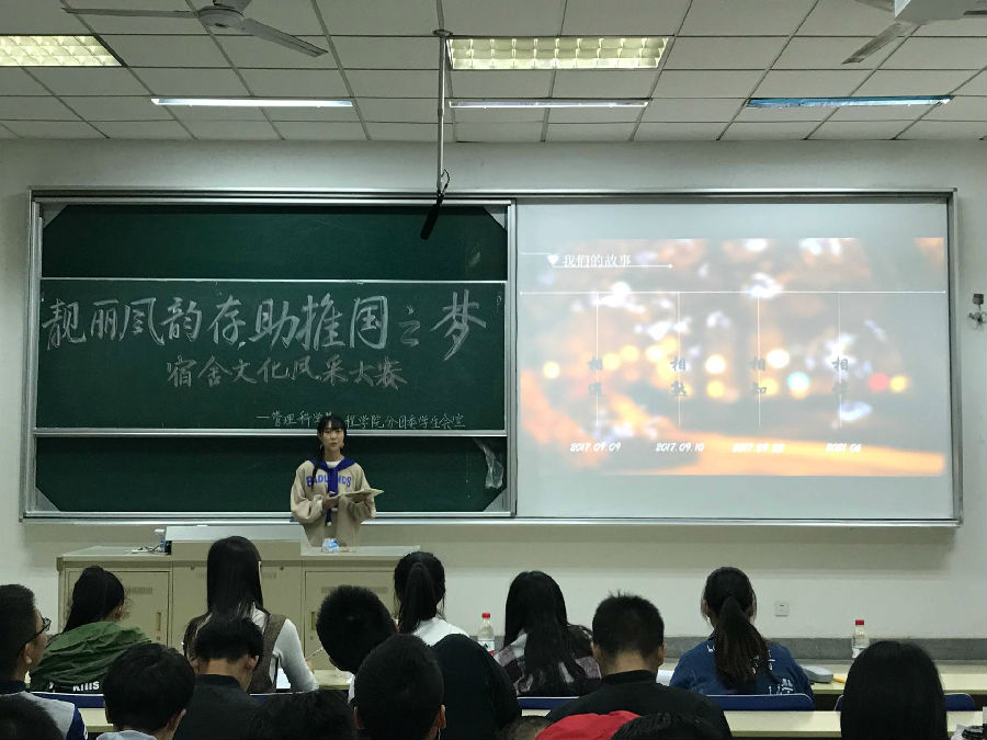 10月25日晚,管理科学与工程学院在仙林校区德业楼103教室举办“靓丽风韵存,助推国之梦”宿舍风采评比大赛。2017级新生以宿舍为单位参加了比赛。