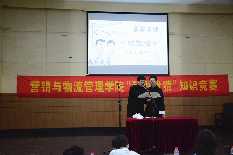 10月11日晚,我校仙林校区德济楼二楼报告厅传出来热烈的竞赛抢答声,在我校61周年校庆到来之际,营销与物流管理学院举办了“我财我猜”校庆知识竞赛,2017级六个新生班级纷纷派出同学组队参赛,该院党委副书记刘颖、分团委书记王慧杰参加活动。