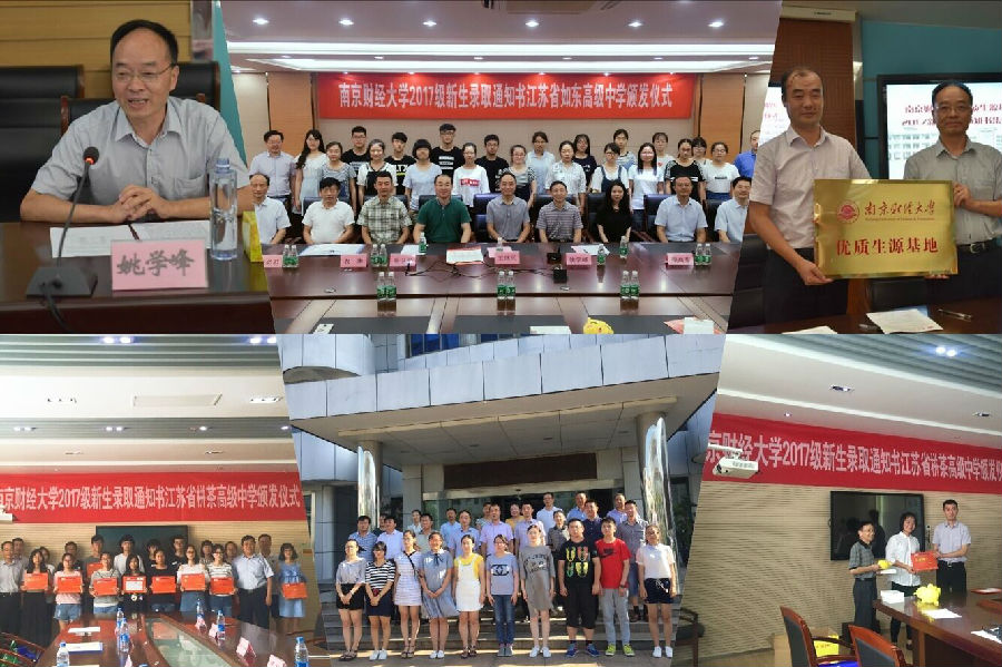 7月31日至8月1日,学生处处长姚学峰、国际经贸学院副院长尚卫平、招生办主任衣琳、国际经贸学院分团委书记顾高菲一行前往南通市如东县三所四星级中学,将录取通知书送到如东地区的49名新生手中,并在江苏省栟茶中学、如东县马塘中学建立优质生源基地。