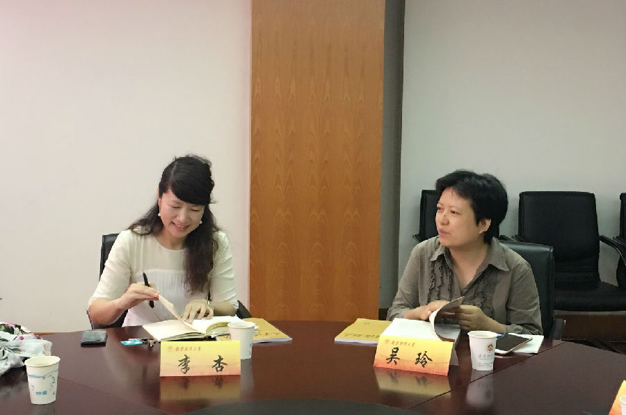 编辑部主任李杏教授分别详细介绍了《产业经济研究》和《南京财经大学学报》近年来取得的工作成效及面临的挑战。吴玲主任充分肯定了两刊编校质量和学术水平,吴玲主任认为办好特色栏目,是普通高校社科学报赖以生存和发展的必然要求。她就如何办好高校哲学社会科学名栏提出了自己的看法:其一,特色栏目建设必须立足于本校的学术力量和现有的学科资源;其二,特色栏目选题必须要善于抓住学术热点,紧紧抓住时代脉搏;其三,实行“栏目主持人”制度是建设特色栏目的有力保障。吴玲主任针对两刊近两期的编校规范,给出了指导性的建议,编辑部人员纷纷表示受益匪浅。吴玲主任还就期刊的国际化发展与编辑部提出了意见,希望双方加强交流和合作,互相学习,共同进步。