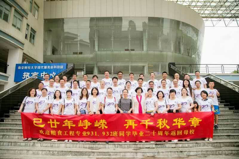 穿上纪念衫,归来仍是那年那少年。7月1日,伴着绵绵细雨,食工学院粮工931、932班校友毕业二十年重返校园再聚首。副校长邱伟芬出席活动,热烈欢迎校友们回校聚会。