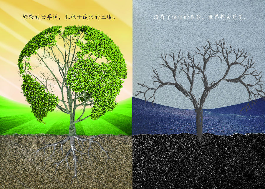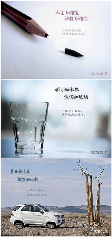 诚信公益广告平面设计类获奖作品(广告1601葛彧) 营销学院供图