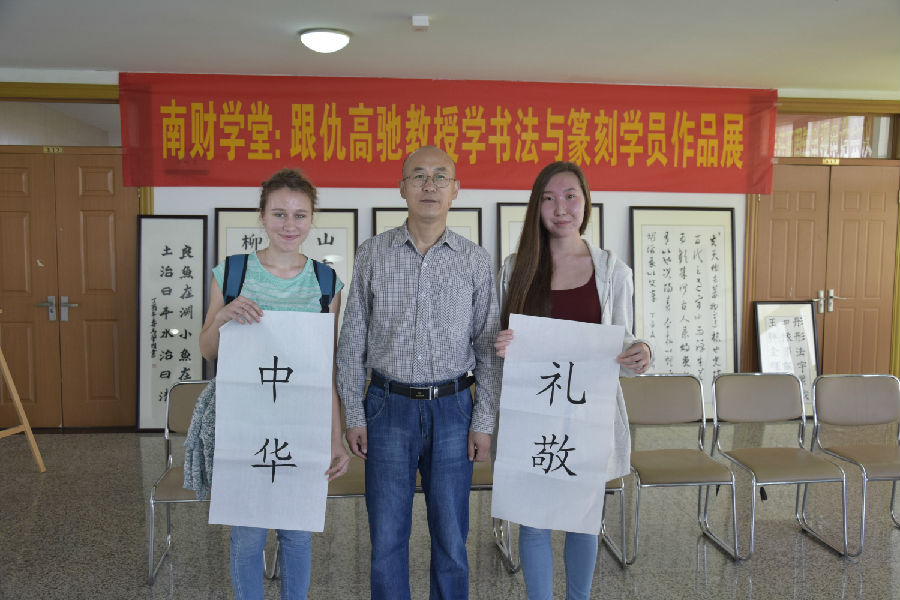 留学生学员展示书法作品“礼敬”“中华” 校团委供图