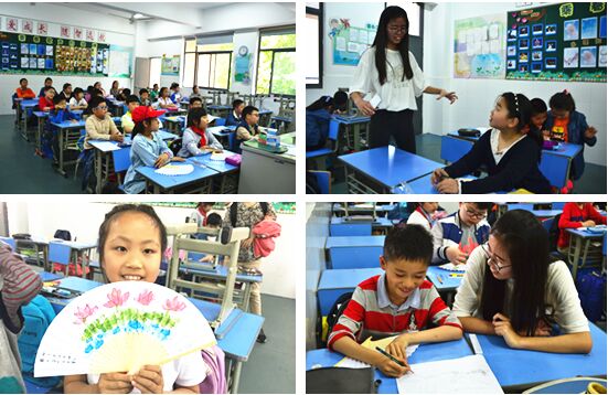 之后,志愿者们带着小朋友们以“接天莲叶无穷碧,映日荷花别样红”为主题在纸扇上作画。小朋友们立马拿起画笔在扇子上描绘一幅幅“美景”。志愿者王同学说:“这些小游戏能将国学的魅力展现给小学生,引导他们加深对国学的理解,爱上中国传统文化。”