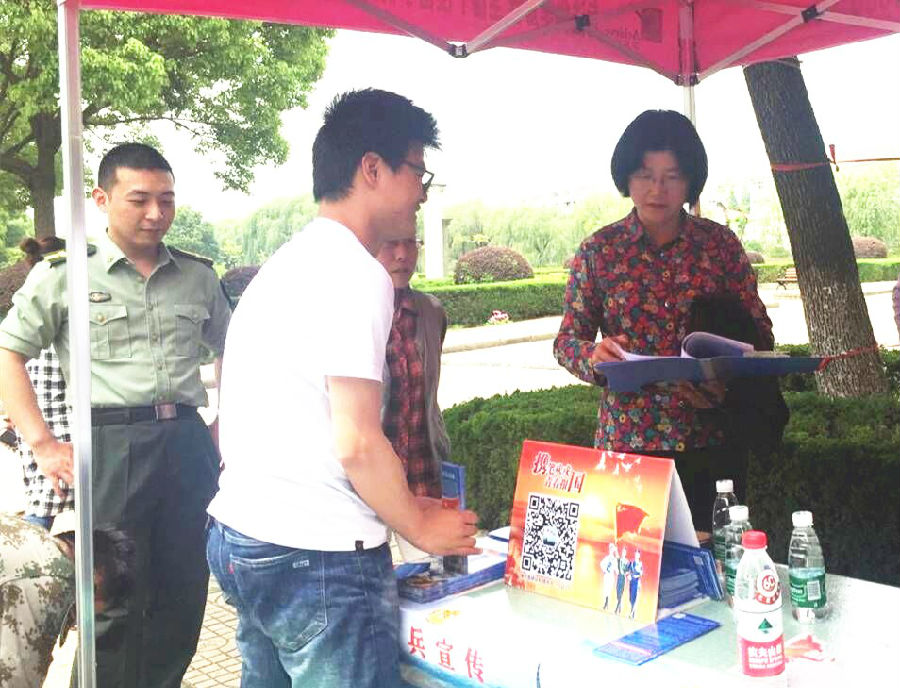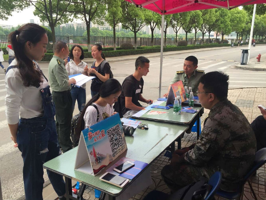 为切实做好大学生征兵工作,深入宣传大学生参军入伍政策,5月11日上午,我校在仙林校区开展2017年度征兵工作现场咨询活动,副校长邱伟芬现场指导并与同学亲切交谈,鼓楼区人武部相关同志及我校武装部工作人员参加活动。