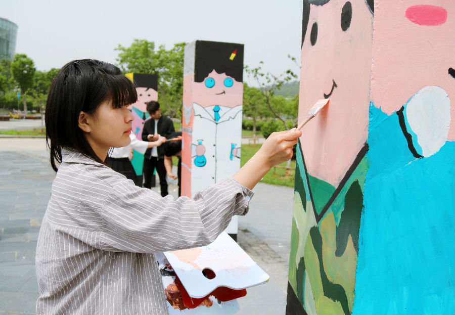 学生积极参与校园文化创意改造