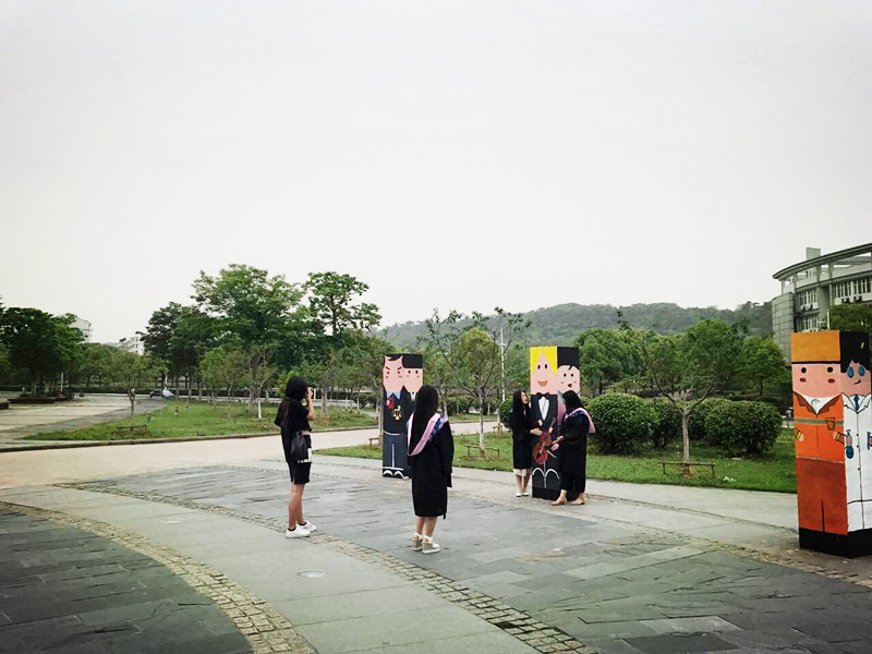 毕业生与变身石柱合影