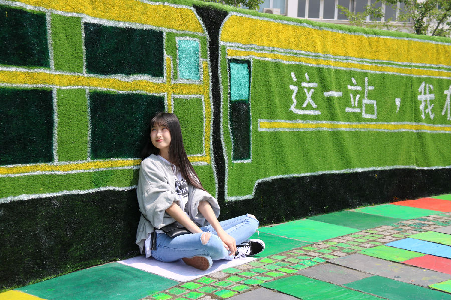 学生在“梦想号”时光列车前留影 艺术设计学院供图