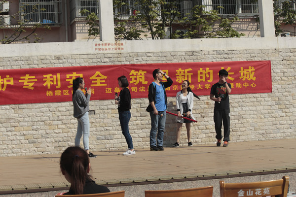 为迎接“4.26”世界知识产权日的到来,4月23日上午,法学院法律援助中心联合栖霞区司法局、栖霞区迈皋桥司法所在迈皋桥金山花园举办了以“尊重知识产权,维护市场秩序”为主题的普法宣传活动。