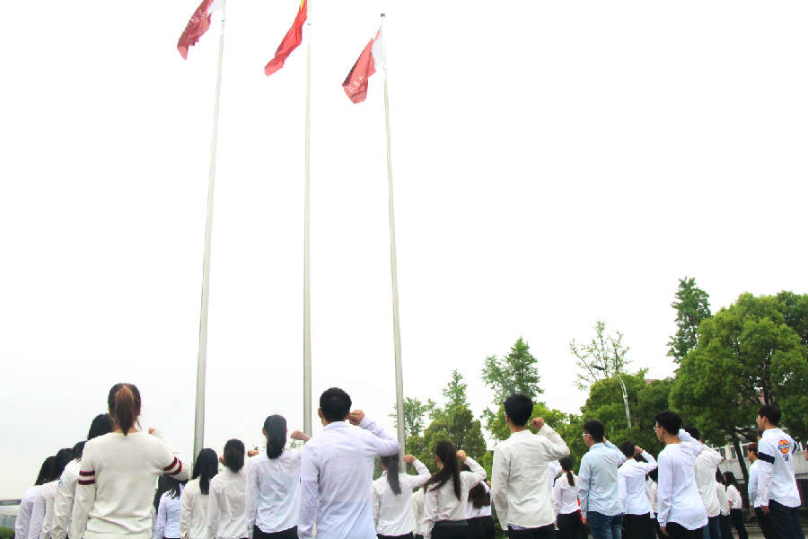 伴随着激昂的国歌,全体成员行注目礼,五星红旗迎着朝阳冉冉升起。袁怡琨副书记发言,她介绍了五四精神的起源和内涵,并着重强调了传承五四精神的意义,希望同学们踏踏实实地学好知识,掌握过硬的本领,为实现中国梦而努力奋斗。接着,主持人带领全体学生宣读入团誓词,重温了入团的庄严时刻。誓词提醒着团员们,身处和平年代,也应继承先辈顽强奋斗的精神,为社会为祖国作贡献。最后,活动在团歌《光荣啊,中国共青团》声中圆满结束。