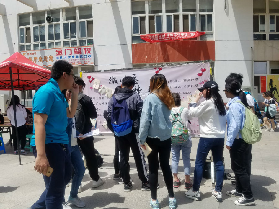 4月18日下午,我校仙林校区西苑食堂前广场热闹非凡。由经济学院分团委、学生会主办的主题为“微心愿,大梦想”的第六届校园爱心公益活动在此火热举办。