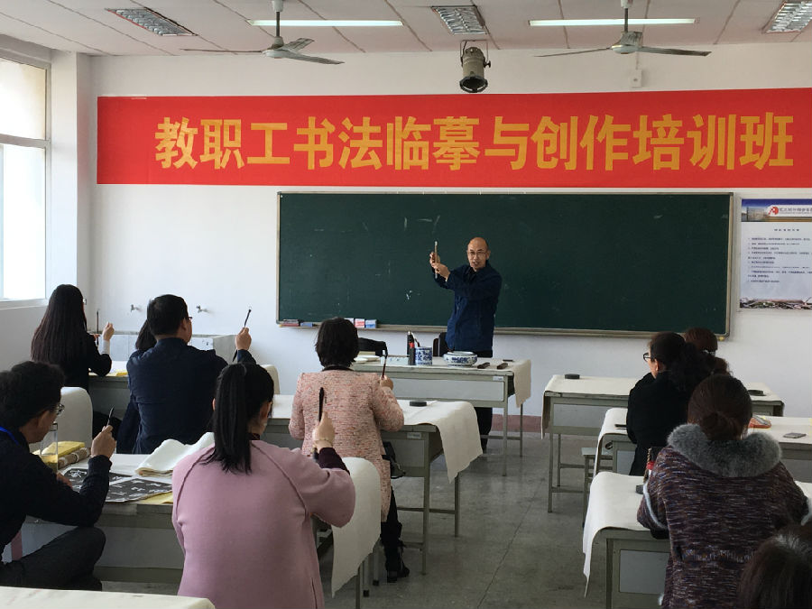 开班仪式上,校工会主席吕戎说,举办书法培训班是为了弘扬中华优秀传统文化,丰富我校教职工的业余文化生活,进一步提高教职工的书法技艺与创作水平。她希望大家珍惜这次难得的向名家学习的机会,同时发挥学习的积极性和主动性,认真临摹练习,感悟其中奥妙,掌握更多的书法知识和基本技能。