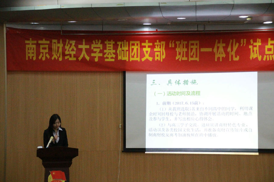 据悉,南京财经大学“班团一体化”创新试点工作旨在贯彻落实中央党的群团工作会议精神,围绕全团“凝聚青年、服务大局、当好桥梁、从严治团”四维工作格局,巩固和优化班级团支部、班委会一体化机制建设。答辩首次采用团委研究和大众评委评选相结合的方式,充分调动基层团支部的积极性,发挥他们的创造力,为“班团一体化”基础建设提供有益经验。