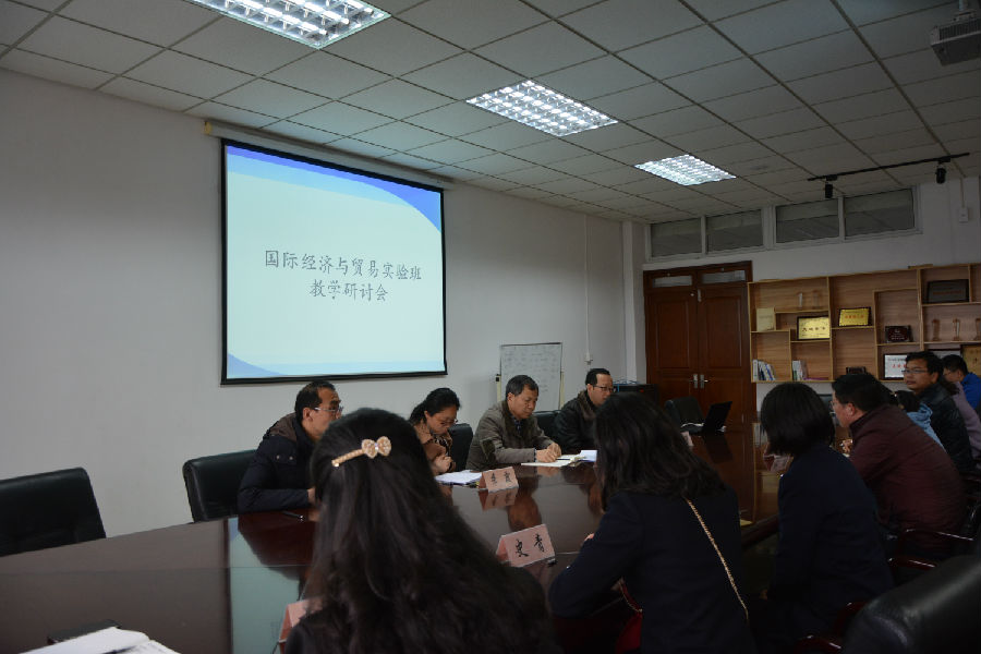 首先,宣烨院长结合目前实验班的基本情况,分析了国贸实验班专业课程教学改革的大致方向,提出分出国、就业、考研三大方向定向培养的精英计划。他认为实验班的生源优、定位高,希望能集全院的力量加大培养力度,为学校和应用经济学领域的专业精英人才培养贡献力量。一直教授双语课程的杨智华老师认为,实验班精英化的培养目标必须坚持,目前,如何消除专业课全英文教学的模式与一年级学生的专业英语基础之间的落差是目前课程改革亟待解决的问题。她建议在课程设置上用专业英语的内容填充传统意义上的大学英语的教学内容。丁强老师认为,可以在培养思路上进行创新,例如课堂上增加讨论式教学。学长导师杨辉就专业英语方面的提升设想与大家作了交流。