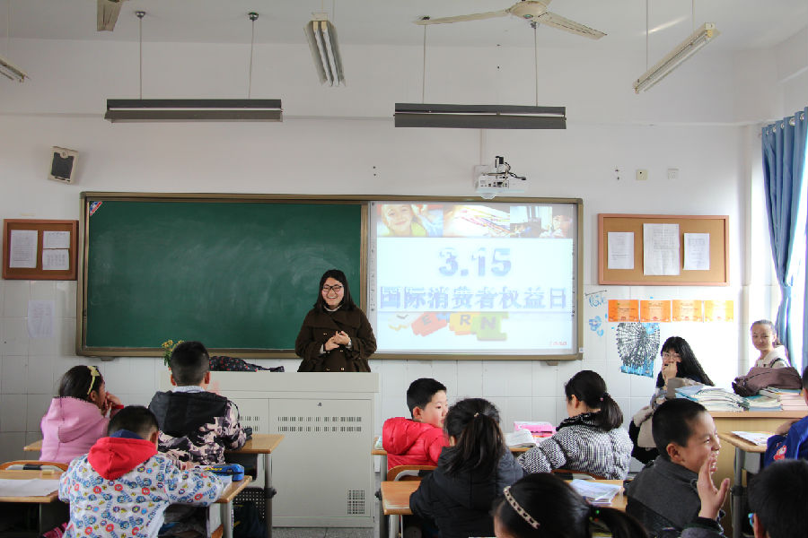 应用数学学院的学生赴摄山星城小学开展“普及正确消费理念,同心共创和谐社会”为主题的维权日公益活动。此次活动包括“学”“思”“用”三个部分。“学”即通过精心准备的视频和PPT,形象生动地介绍315消费者维权日的相关知识。“思”即通过知识竞答的方式,让小学生对315的相关知识能够入脑、入心。“用”即模拟现实生活中消费者被侵权的场景,让他们现场表演如何进行维权,做到活学活用。一位小学生说:“今天哥哥姐姐教会了我们在生活中如何进行维权,他们讲的生动有趣,希望他们以后能常来。”