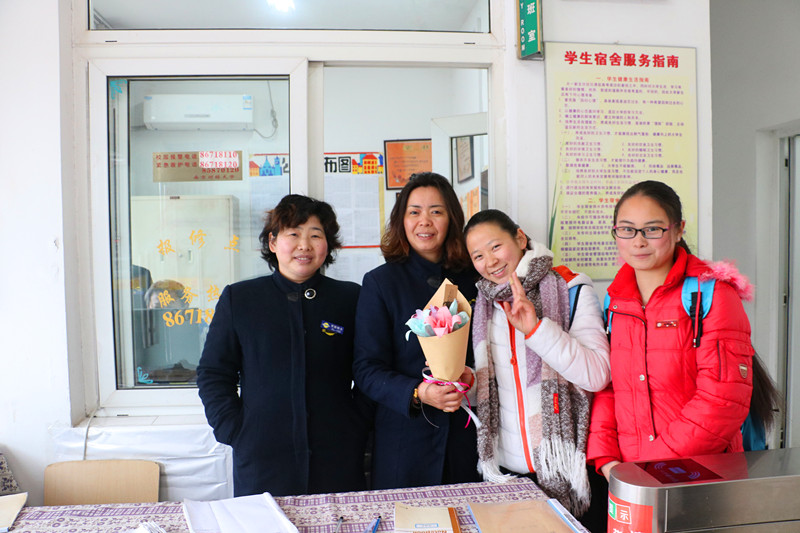 同学们为宿管阿姨献上三八节礼物 营销物流与管理学院供图