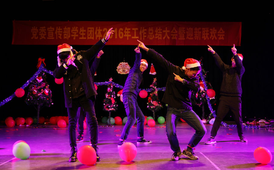 12月22日晚,党委宣传部学生团体2016年工作总结大会暨迎新联欢会在我校仙林校区校园电视台演播厅举行。党委宣传部领导、工作人员、所属五大学生团体(校报记者团、校广播台、校摄影协会、校电视台、新媒体中心)成员齐聚一堂,一同在欢声笑语中迎接新年的到来。