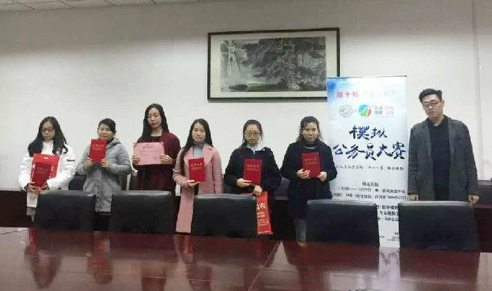 本次大赛于11月中旬启动,前期进行了模拟笔试,包括《行政能力测试》与《申论》考试。赛前培训给同学们详细讲解了江苏省公务员考试招考最新信息、考试流程、新题型、考试变化趋势和核心难点等。笔试前十名的同学进入决赛,身着正装接受考官面试。面试环节对选手的综合分析能力、应变能力、沟通能力、信息提取能力、语言表达能力和举止仪表进行了综合评定。