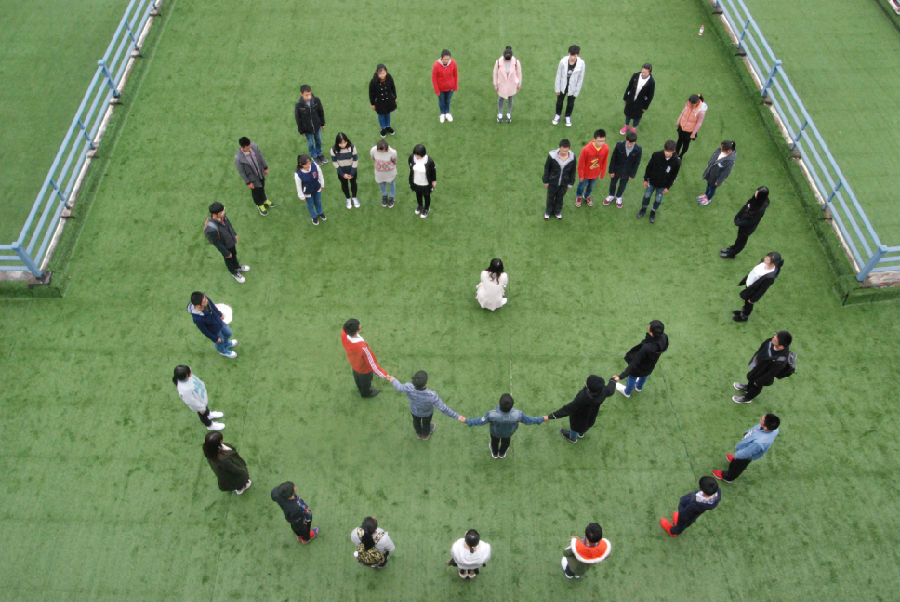 在仙林校区管理学科楼五楼草坪,管理科学与工程学院学生们两人一组定点站位,一人挥手打招呼,另一人微笑相对,交错而立。在负责人的精准指挥和学生们的积极配合下,“Hi”字造型很快摆好,惟妙惟肖。接着,一张“笑脸”迎面而来,外面的学生站成一个圆圈,中间13人分别站在笑脸的眼、鼻、嘴位置,他们用自己的微笑传递着最温情的问候。