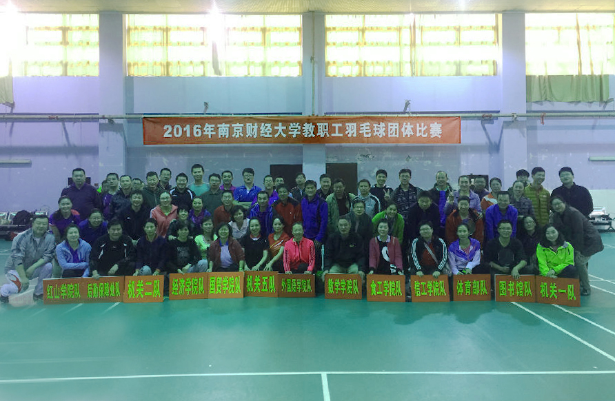 11月12日,由校工会主办、教职工羽毛球协会承办、校体育部协办的2016年教职工羽毛球团体赛在仙林校区体育馆举行。机关党委书记孙彬、校工会副主席张耀光、体育部副主任(主持工作)何强及参赛运动员参加了开幕式。