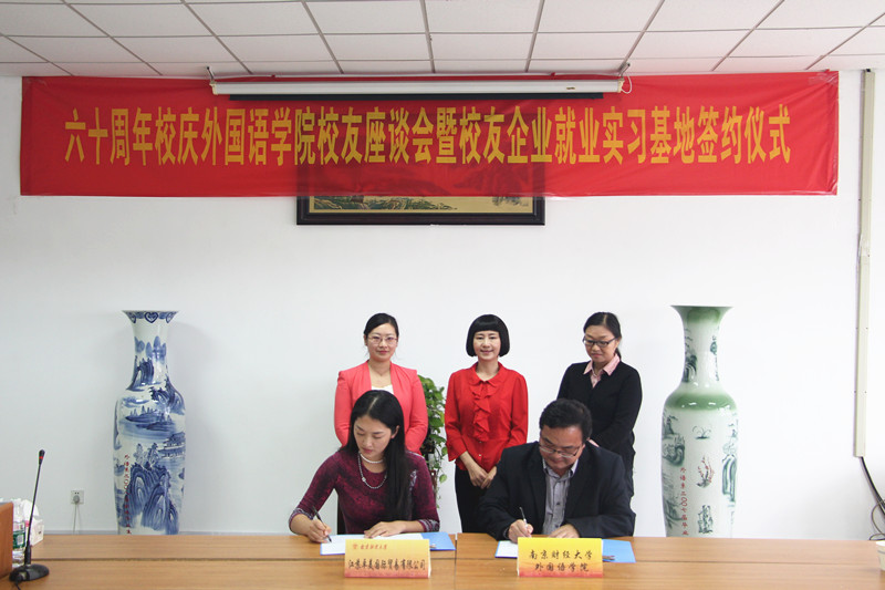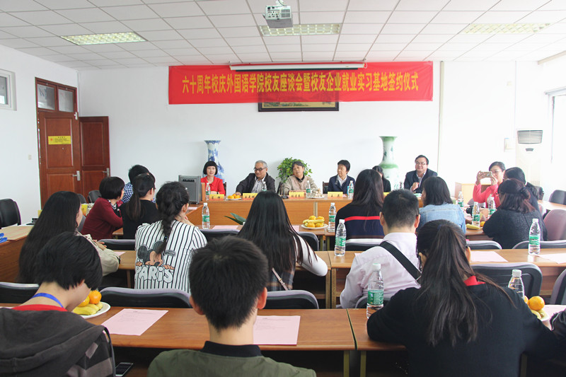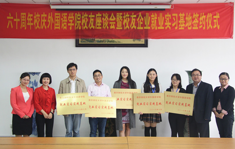 10月16日,我校60周年校庆之际,外国语学院迎来了全国各地返校校友。当天下午,在仙林校区法政学科楼308会议室召开了外国语学院校友座谈会暨校友企业就业实习基地签约仪式。外国语学院全体党政领导,保卫处副处长金立林,外国语学院王克明教授,退休教师张莲英、王展,学院部分教师及返校校友参加了座谈会。