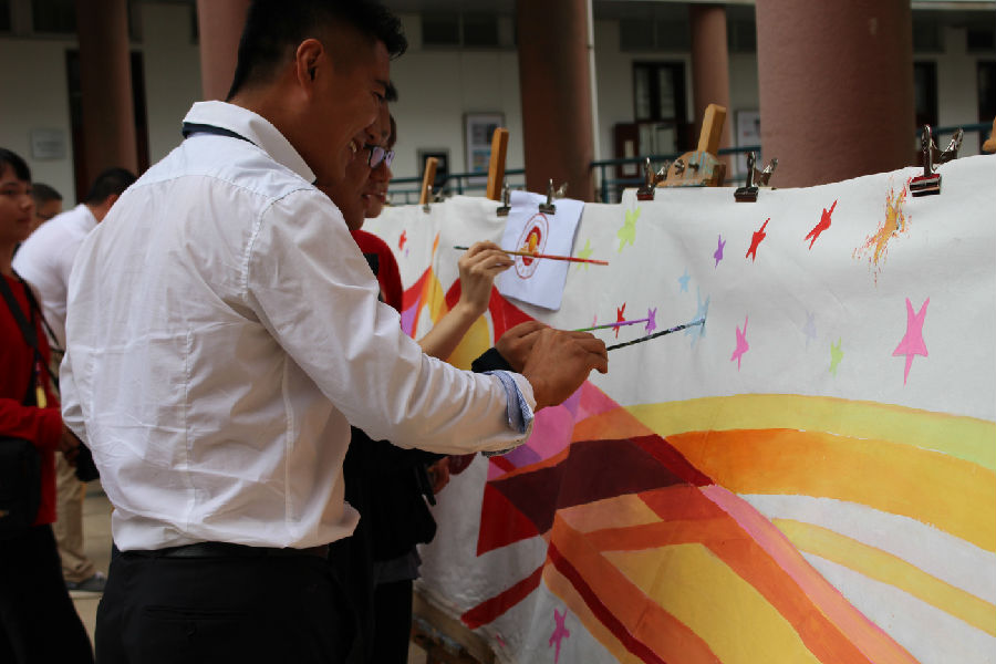 此外,为献礼建校60周年,艺术设计学院设计并组织了“60米长卷绘画庆校庆”活动。画作分为水墨时光、逐梦青春、甲子年华、艺同成长四个篇章,同学、老师纷纷拿起画笔,用艺设人特有的方式祝福母校60华诞;校友们也在画布上画下了一颗颗闪亮的星星,寓意“星耀南财”,祝愿南财的明天星光闪耀。同时,学院在艺术楼一楼走廊的橱窗里精心布置了“记忆墙”,将历届的毕业照合影、近十年的学生活动照片在记忆墙上予以展示,校友们纷纷在记忆墙前驻足,回忆青葱岁月。