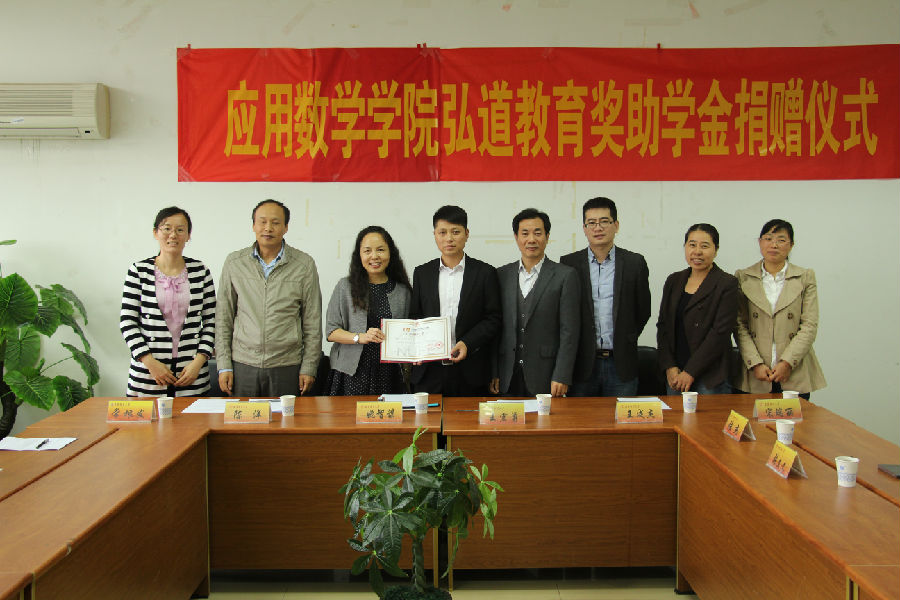 据悉,南京弘道教育咨询有限公司捐赠的五万元教育基金,将用于资助应用数学学院家庭贫困、学习成绩优异的学子考研深造。