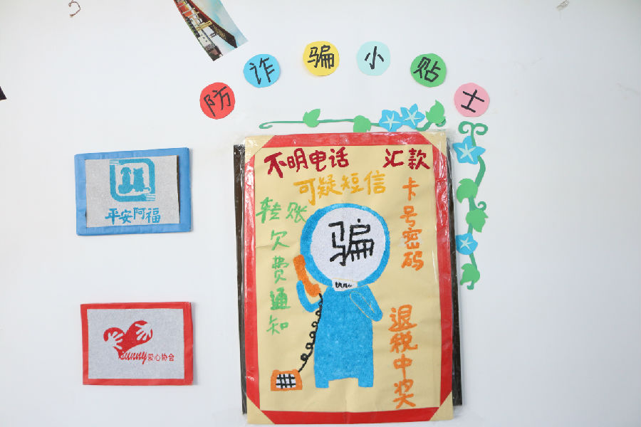 国际经贸学院给新生们画的防骗纸浆画小贴士 国际经贸学院供图