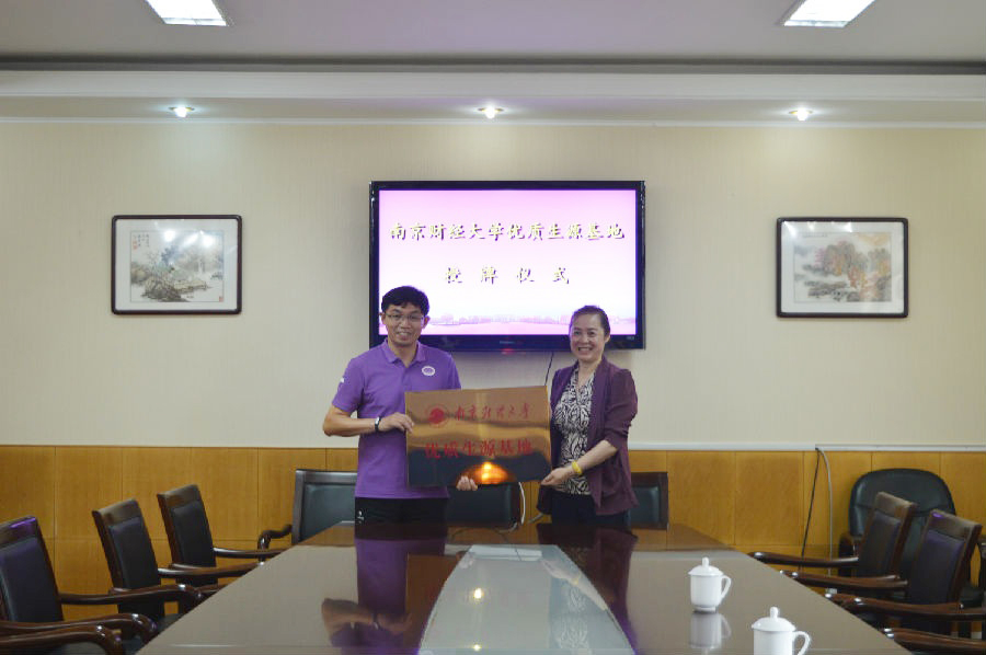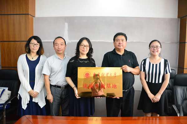 6月27日上午,工商管理学院党委书记章莹、副书记李博伟一行赴连云港新海高级中学参加“南京财经大学优质生源基地”签约授牌仪式。新海高中副校长蒋捍等参加了授牌仪式。