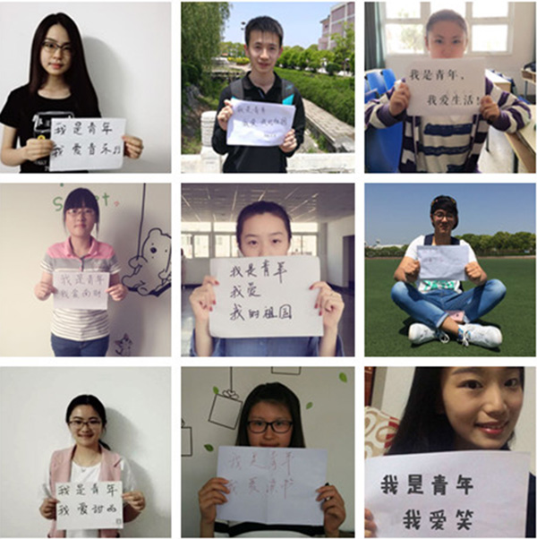 外国语学院的青年学子们选择了一种独特的方式“告白”祖国。同学们在镜头前用白纸写下自己的“告白”:“我是青年,我爱公益”、“我是青年,我爱运动”、“我是青年,我爱读书”,“我是青年,我爱音乐”……当然最醒目的还是一句句“我是青年,我爱我的祖国。”英语1302班陈纤逸同学还为这些照片配上了自己的原创诗歌《时代的青年》,诗歌中写道,我们是初春的和风,推动理想的远程,在希望的伊始,拥抱刚毅与自信……