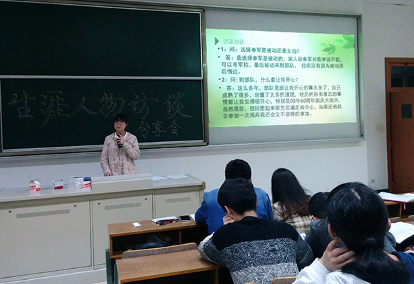 同学们通过面谈、电话采访、QQ、微信等方式了解了入职十年以上的职场人士的工作现状和发展路线,以PPT、Prezi、视频、情景剧等方式依次就银行信贷部经理、财务会计、大学生村官、财经记者、大学教师等职业进行了分享。此外,同学们还详细交流了各自的访谈过程、访谈结果报告以及心得感悟。