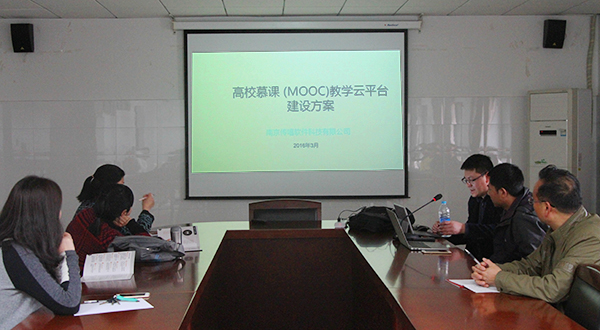 交流会上,慕课平台系统设计与应用工程师任跃结合专属资源管理平台、教学平台、就业创业平台和互动教学模式等方面需求给出了相应的解决方案,并针对慕课系统的运作模式和功能作了详细的讲解。任跃还着重强调了慕课平台系统最显著的三个特点:在线录制、手机协助和课堂互动。
