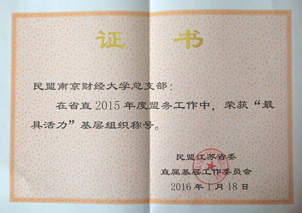 据悉,此次评选由民盟江苏省委和直属基层工作委员会组织,经过多项考核,共有17个基层组织获此奖项。近年来,我校民盟总支不断创新活动方式,增强组织活力,促进工作制度化、规范化,在盟务工作方面取得了很好的成绩。