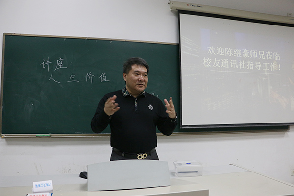 3月14日晚,南京财经大学北京校友会副会长陈继豪在仙林校区经济学科楼106教室与校友通讯社同学座谈交流“如何实现自己的人生价值”。