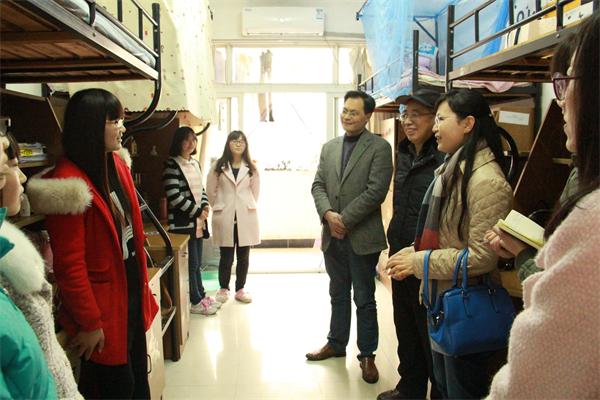 3月2日下午,营销与物流管理学院院长倪明、副院长张国军、党委副书记刘颖一行走访北苑学生宿舍,了解学生返校及新学期学习生活情况。