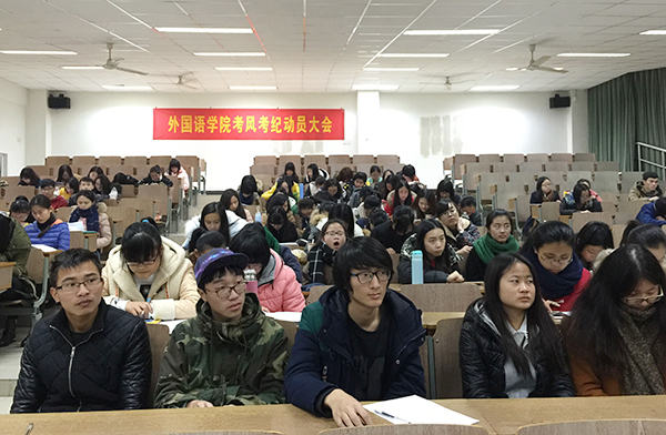 1月4日下午,外国语学院在仙林校区教C楼203室举办了考风考纪动员会暨诚信考试承诺书签名活动。外国语学院党委书记刘浩、副书记李慕原及部分师生参加活动。