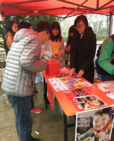 身穿红色马甲的Sunny爱心协会工作人员在寒冬的冷风中早已布置好了现场。活动开始不久,摊位前就已经人头攒动,短短一个多小时,外场的600多个苹果便已完全售罄。每卖出一个苹果,就相当于为免费午餐基金会捐出一元钱,用来改善山区孩子们的伙食。活动现场的一位陈同学表示,这次活动不仅可以在同学之间互送苹果表达祝福,还能为山区的孩子献上自己的一份爱心,非常有意义。