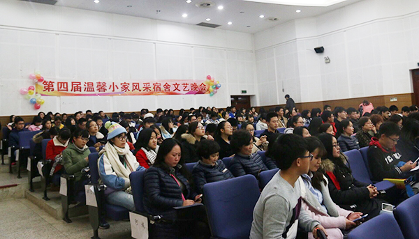 12月3日晚,由宿舍管理委员会主办的第四届温馨小家暨风采宿舍文艺晚会在仙林校区管理学科楼报告厅火热举行。活动现场座无虚席,部分同学和宿管阿姨们一同观看了本次晚会。