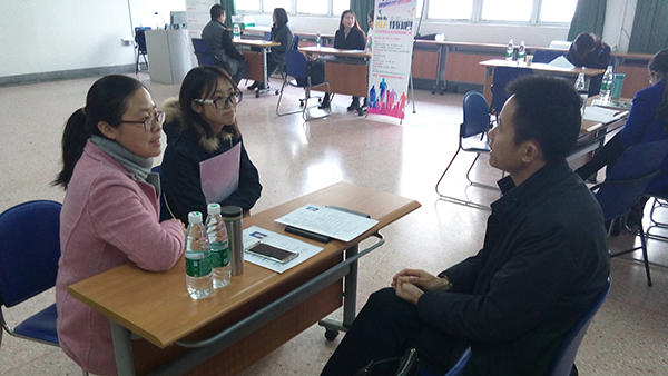 近日,法学院2016届毕业生专场招聘会在仙林校区法政学科楼社工实验室举行。江苏彦圣律师事务所、鸿图律所、江苏银凤金革资产管理有限公司、南京耘思堂房地产策划咨询有限公司、南京市栖霞区虚拟养老院等多家机构现场选录毕业生。