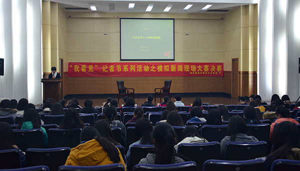 11月18日晚,由新闻学院长江记者团主办的“我看见”系列活动之模拟新闻现场大赛决赛在仙林校区管理学科楼报告厅举行。新闻学院副院长(主持工作)宋祖华、新闻学院分团委书记孙启等担任评委。经过激烈的初赛选拔,5位选手入围决赛。近百名观众观看了决赛。