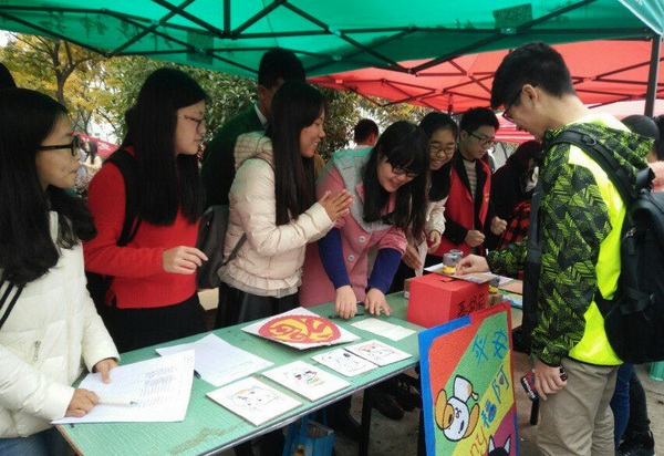 栩栩如生的汤姆猫,活泼可爱的史努比,脑袋大大的哆啦A梦,还有萌萌哒的嗷大喵……一幅幅鲜活而富有立体感的画作,居然是都是用废纸做成的!11月20日中午,我校Sunny爱心协会在仙林校区中苑食堂外举办以“关爱身边的那个它——关爱流浪动物”为主题的纸浆画制作公益活动,吸引了众多学生的关注。“原来废纸还可以这样用!”“好可爱的史努比,我来做!”许多同学发出感叹,甚至有的同学提出想多做几幅送给朋友。