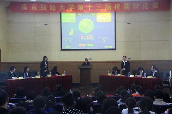 11月15日晚,由党委宣传部、校团委、财政与税务学院主办,校大学生辩论与演讲协会承办的第十三届校园辩论赛半决赛在仙林校区管理学科楼报告厅举行。党委宣传部部长韩力争、学生处处长姚学峰、校团委副书记(主持工作)张励行担任比赛评委。