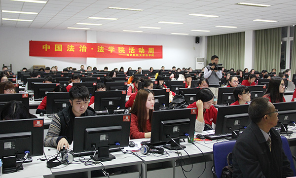 11月16日晚,作为我校第七届法律文化节系列活动之一的“中国法治•法学院活动周”在仙林校区教B楼105室启动。本次活动由人民法院报“中国法治”客户端、南京市栖霞区人民法院、南京市栖霞区司法局联合主办,我校党委宣传部、法学院共同承办。栖霞区司法局副局长崔雨笛、栖霞区人民法院政治部主任汪春跃、我校党委宣传部副部长梅景辉等出席了启动仪式。仪式由法学院党委副书记庄素娟主持。