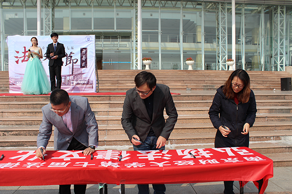 11月3日中午,我校第七届法律文化节在仙林校区大学生活动中心广场开幕。校团委、法学院相关负责人及参加定向越野活动的各学院代表队、部分社团参加开幕式。